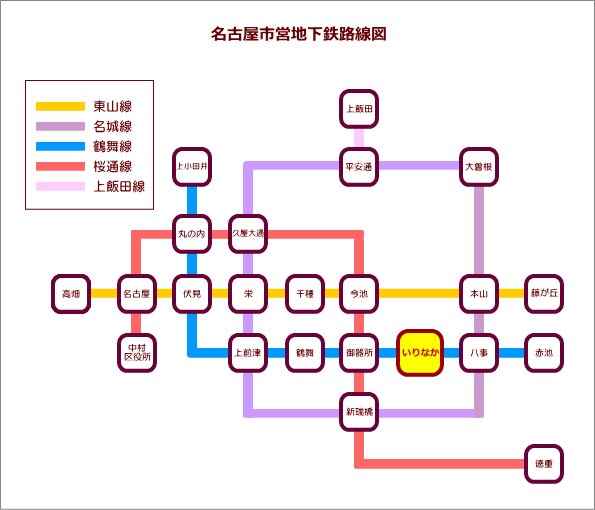 地下鉄でのアクセス地下鉄鶴舞線『いりなか』駅下車